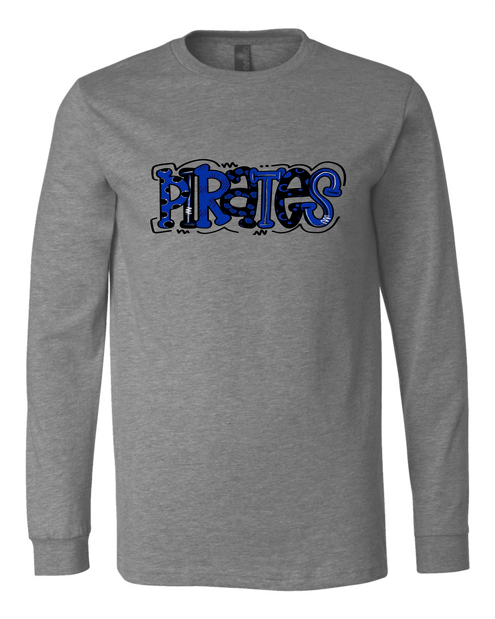 "Pirates Bubble Letters" Adult Long Sleeve Tee
