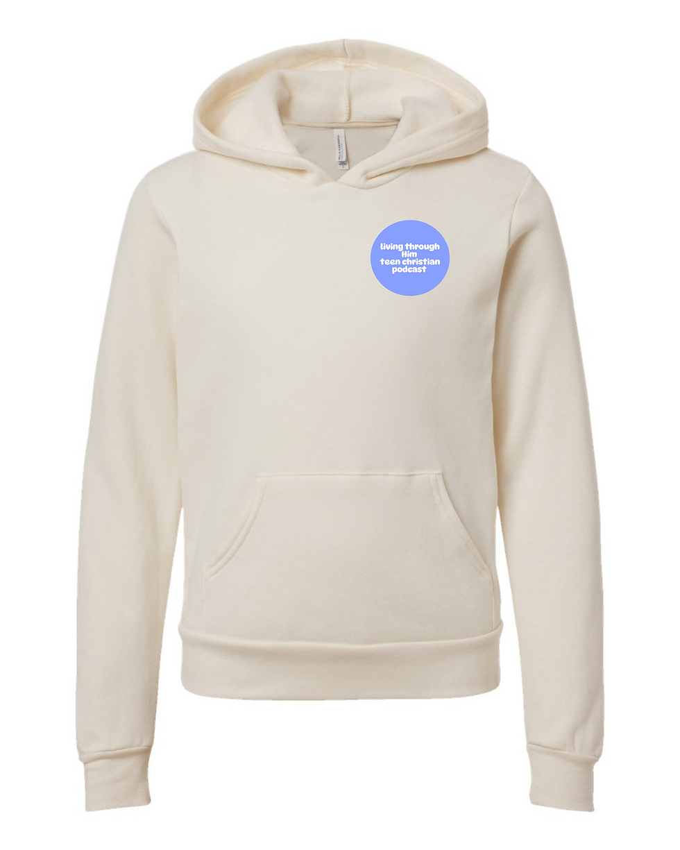 "Living Through Him White Cross" Youth Hooded Sweatshirt